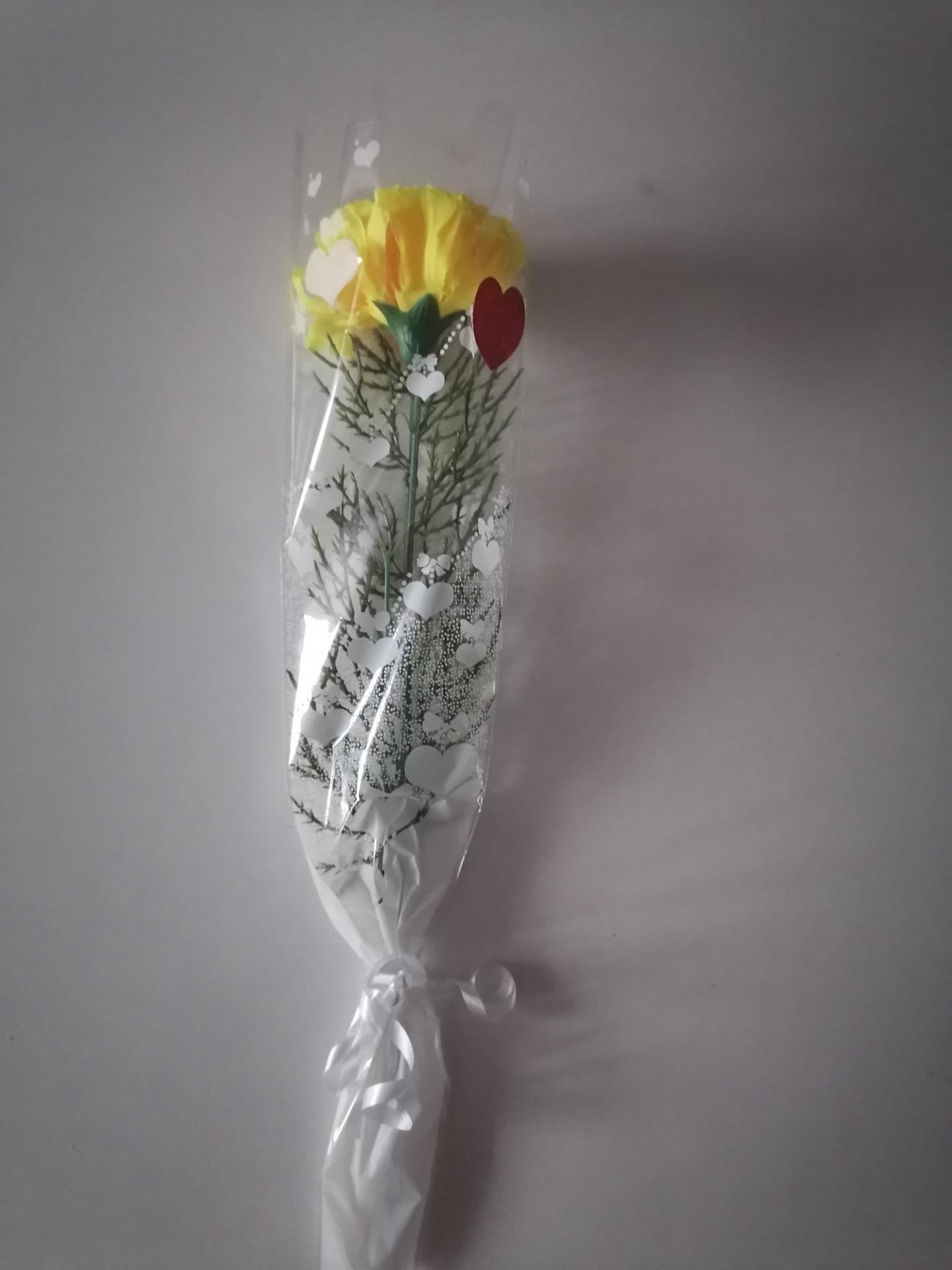 Egyszálas selyem szegfű ,celofán csomagolásban.